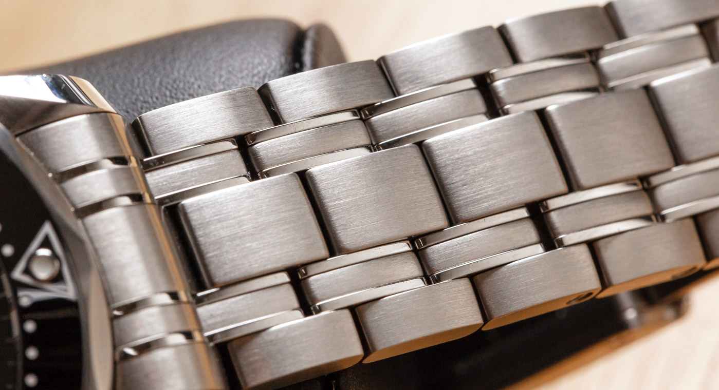 Hablemos un poco de la esfera. La legibilidad es realmente fantástica porque las manecillas y los marcadores de hora son tan grandes como pueden serlo y además están a gran altura (relativamente hablando) de la esfera. Los índices aplicados y las agujas también tienen un pulido que capta la luz y ayuda a que contrasten bien con la esfera de cerámica negra. El resultado irónico es que, como esta esfera capta la luz y la refleja, resulta más legible. Normalmente ocurre lo contrario, ya que la luz provoca desenfoques y reflejos que hacen que las esferas sean menos visibles.