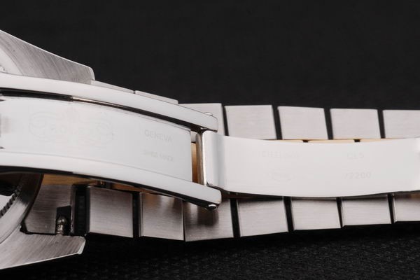 El diseño de este reloj incluye un brazalete de eslabones de oro de 18k que se complementa perfectamente con el bisel tachonado de diamantes, haciendo de este modelo una auténtica joya en la muñeca. Además, su cristal de zafiro y la corona de oro amarillo de 18k, junto con un grosor de 12 mm, aseguran que este reloj no solo sea visualmente atractivo, sino también increíblemente resistente y duradero. Para aquellos que buscan una “rolex replica” de alta calidad, la “replica rolex uk” es una opción a considerar seriamente.