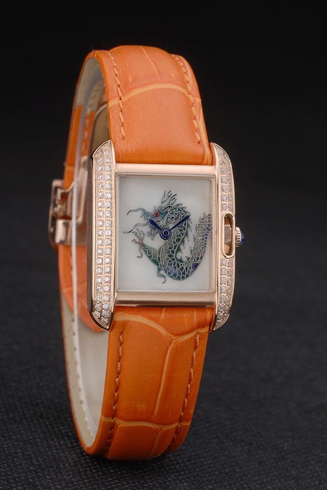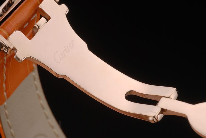 Bracelet de acero inoxidable: Naranja en relieve de calor correa de piel de cocodrilo Cartier rosa de 18 quilates chapado en oro plegable en cierre de hebilla