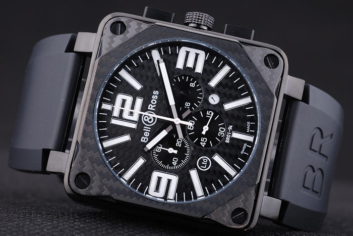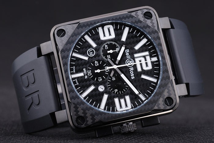 Bracelet de acero inoxidable: El calor en relieve logotipo y código de producto correa de caucho negro de Bell & Ross con el ion -plated gancho hebilla clasp