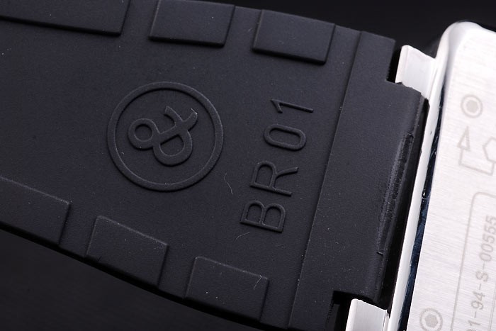 Bracelet: correa de caucho Negro con el logotipo en relieve de calor, el número de modelo y el código de producto y BR grabado acero inoxidable cepillado de gancho hebilla de cierre de