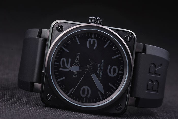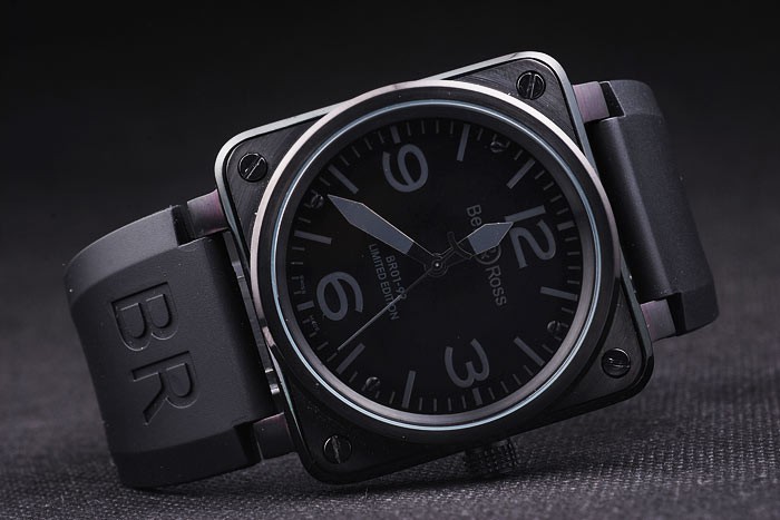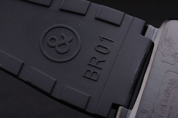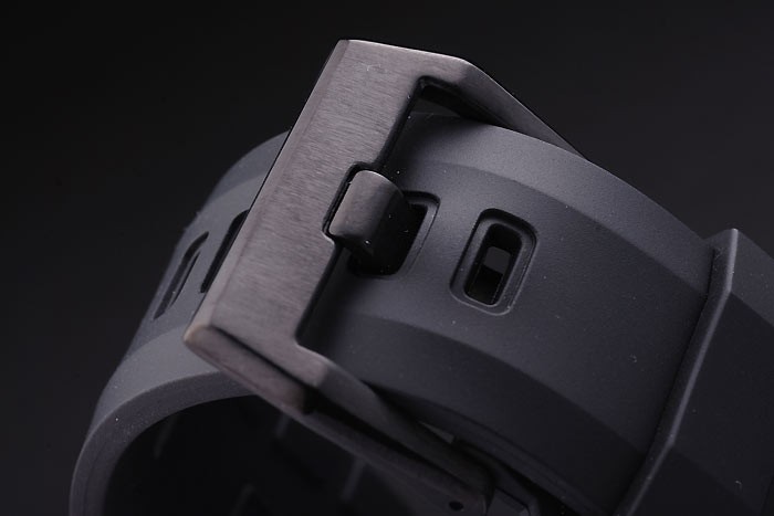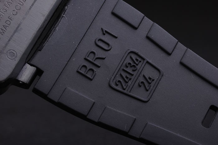 Bracelet de acero inoxidable: correa de caucho Negro con el logotipo en relieve de calor, el número de modelo y el producto código y BR grabado de iones de chapado de gancho hebilla de cierre de