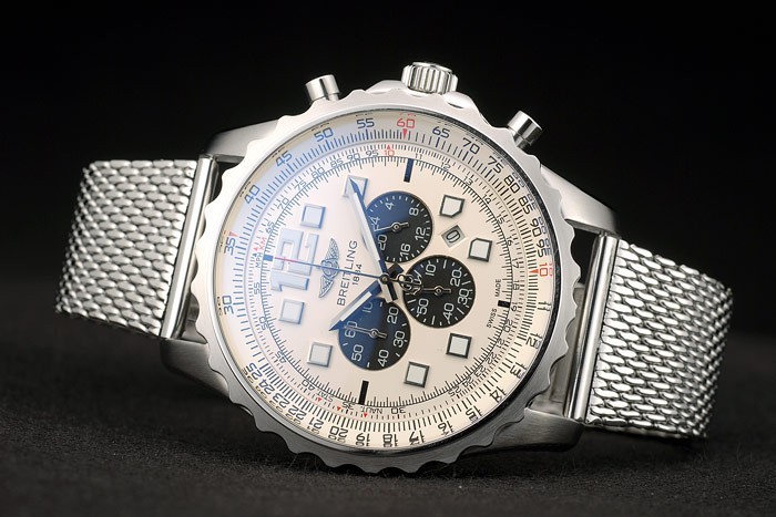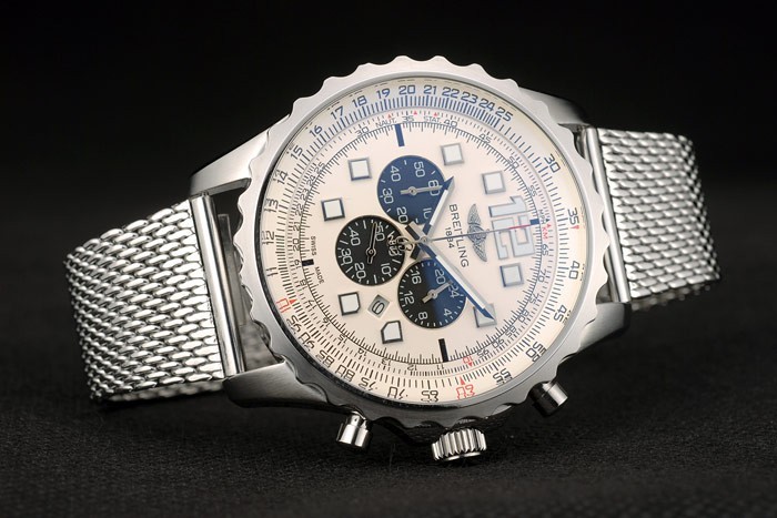 Crown: pulido corona calado de acero inoxidable con el logotipo de Breitling y dos pequeñas coronas de botón redondo a cada lado de it