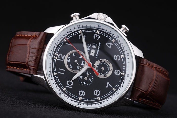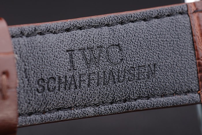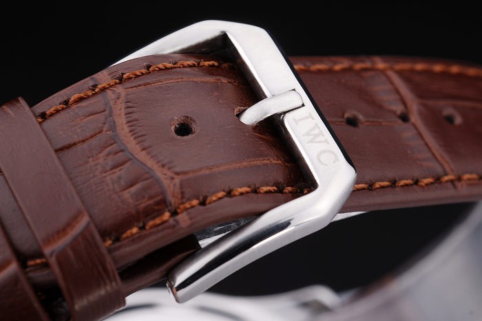 Bracelet de acero inoxidable: correa de cuero IWC Schaffhausen calor en relieve de cocodrilo marrón con CBI inscrito acero inoxidable gancho hebilla clasp