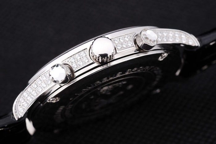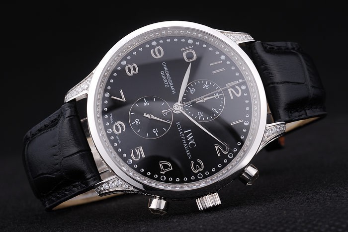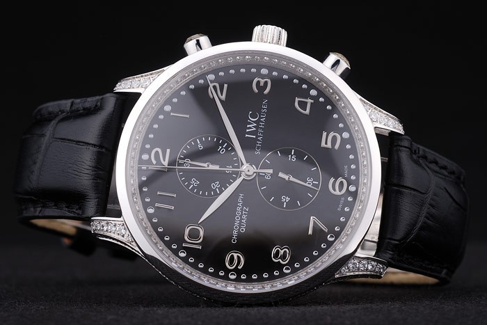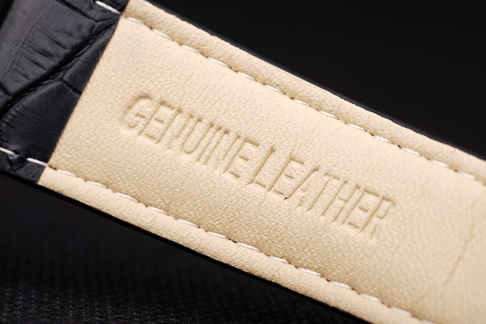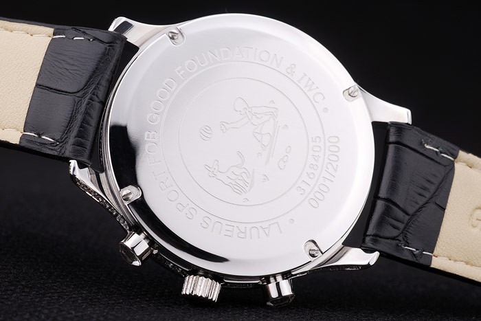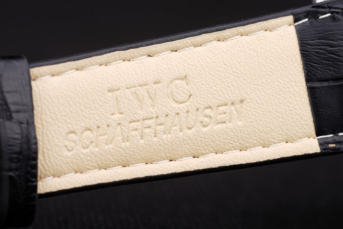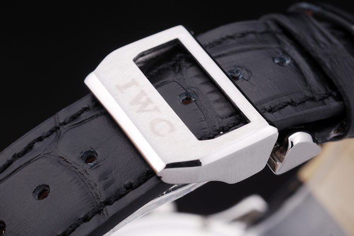 Bracelet de acero inoxidable: correa de cuero IWC Schaffhausen calor en relieve de cocodrilo negro con CBI inscrito acero inoxidable gancho hebilla clasp