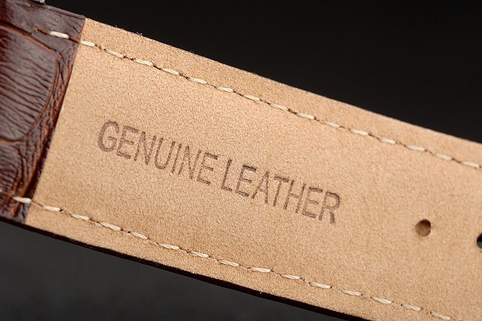 Bracelet de acero inoxidable: correa de piel de cocodrilo marrón MontBlanc calor en relieve con el logo MontBlanc inscrito y el gancho oculto de acero inoxidable pulido clasp