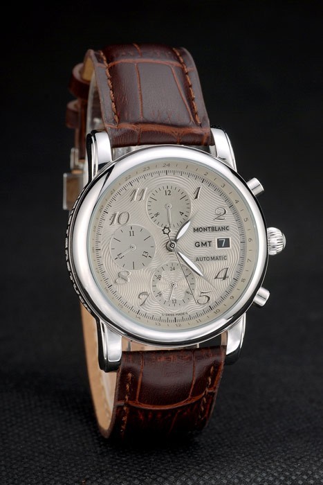 Crown: acero inoxidable pulido cutwork redondeada corona con logo Montblanc y dos botones coronas de empuje de acero inoxidable pulido en ambos lados de it