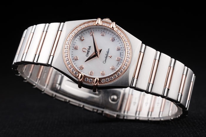 Case: acero inoxidable cepillado y oro rosa eslabón de la cadena de pulsera con cierre oculto y el logotipo de Omega en top