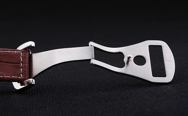 Bracelet de acero inoxidable: correa de piel de cocodrilo marrón con costuras blancas y Omega logotipo grabado de acero inoxidable gancho hebilla clasp