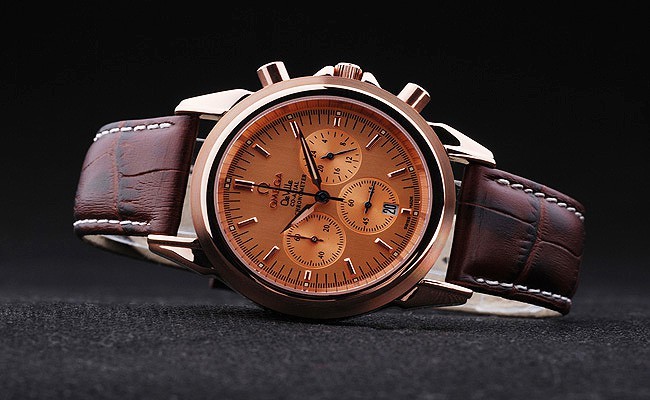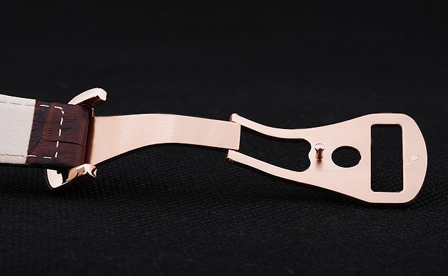Bracelet: correa de piel de cocodrilo marrón con costuras blancas y el logotipo de Omega grabado en oro rosa de gancho hebilla clasp