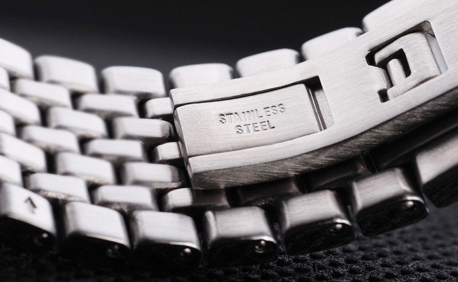 Bracelet de acero inoxidable: cepillado y pulido brazalete de eslabones de acero inoxidable con el logotipo de Omega grabado clasp