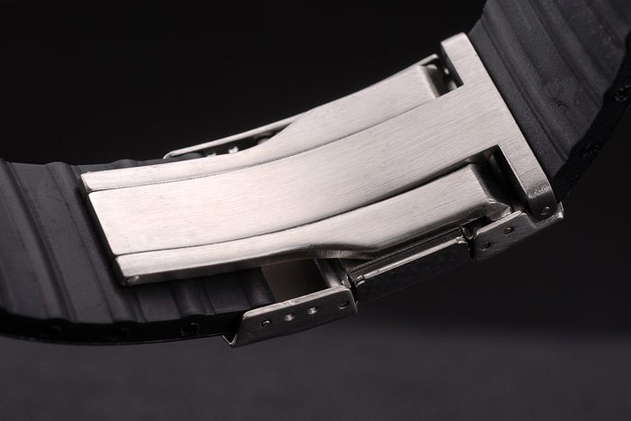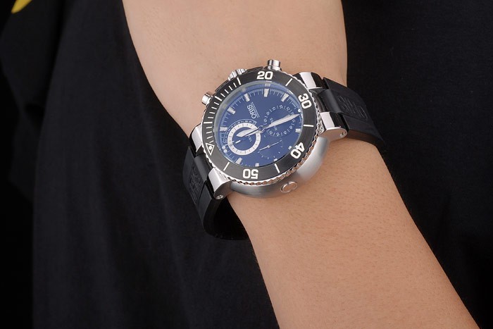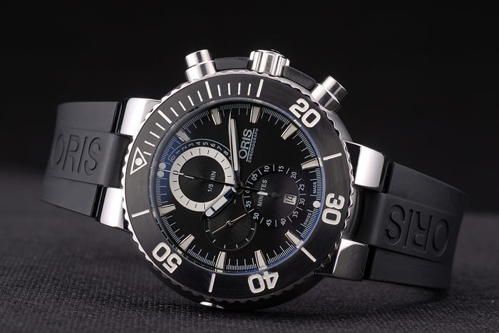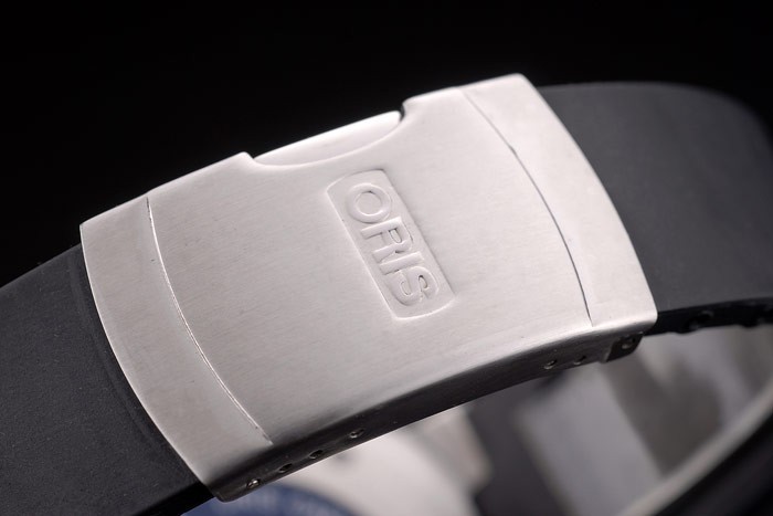 Gender: el despliegue de acero correa de caucho negro Oris de calor en relieve con Oris grabado inoxidable cepillado: Hombres