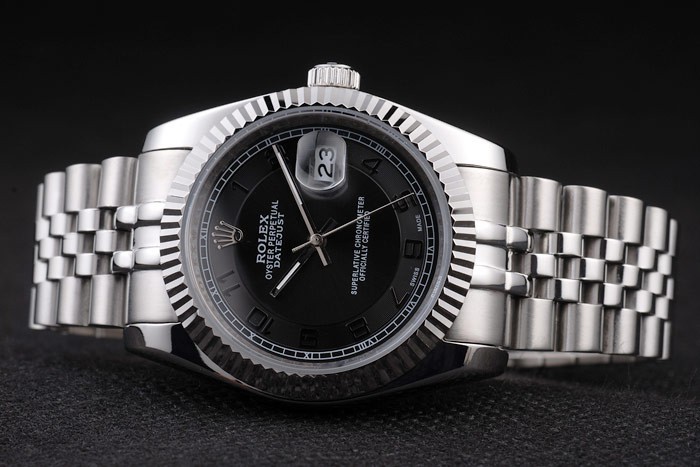Bracelet acero inoxidable cepillado y pulido brazalete de eslabones de acero inoxidable con Rolex grabado cierre oculto que muestra la longitud Rolex logo