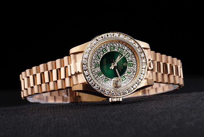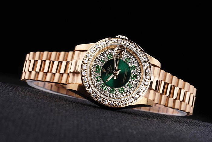 Volver: oro amarillo de 18 quilates chapado en caso de empuje de acero inoxidable de nuevo con el verde Rolex logo stamp