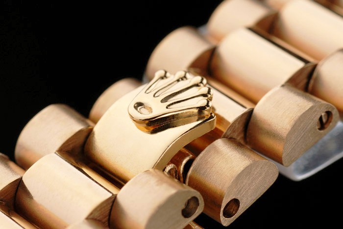 Bracelet de acero inoxidable: oro amarillo 18k plateó la pulsera de eslabones de acero inoxidable con Rolex grabado cierre oculto que muestra la longitud Rolex logo