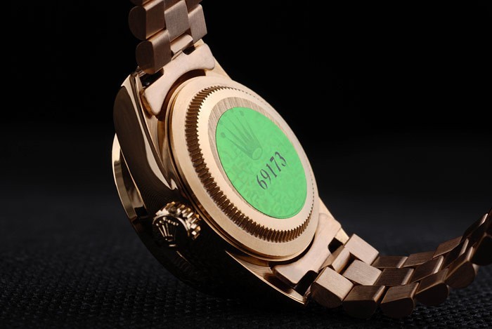 Volver: oro amarillo de 18 quilates chapado en caso de empuje de acero inoxidable de nuevo con el verde Rolex logo stamp