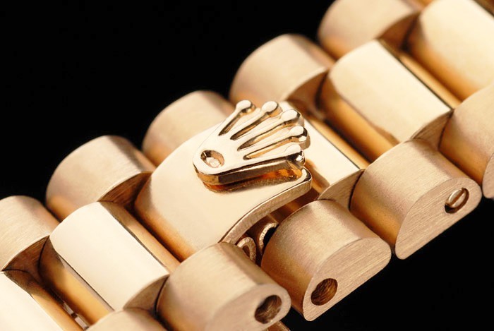 Bracelet de acero inoxidable: oro amarillo 18k plateó la pulsera de eslabones de acero inoxidable con Rolex grabado cierre oculto que muestra la longitud Rolex logo