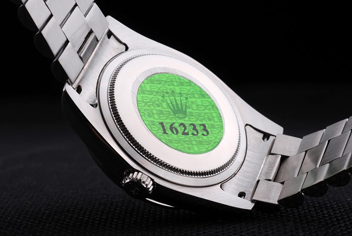 Volver: Acero inoxidable empuje en caso de vuelta con el verde Rolex logo stamp