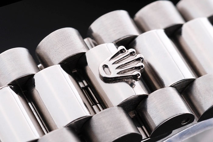 Bracelet acero inoxidable cepillado y pulsera de acero inoxidable pulido con el grabado Rolex cierre oculto que muestra la longitud Rolex logo