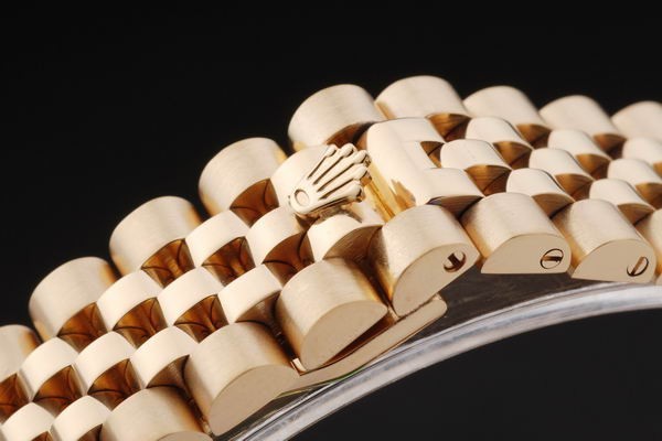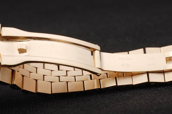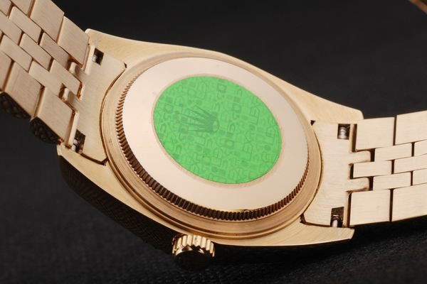 Back: Empuje hacia atrás en oro amarillo de 18 quilates con la etiqueta engomada Rolex verde y markings