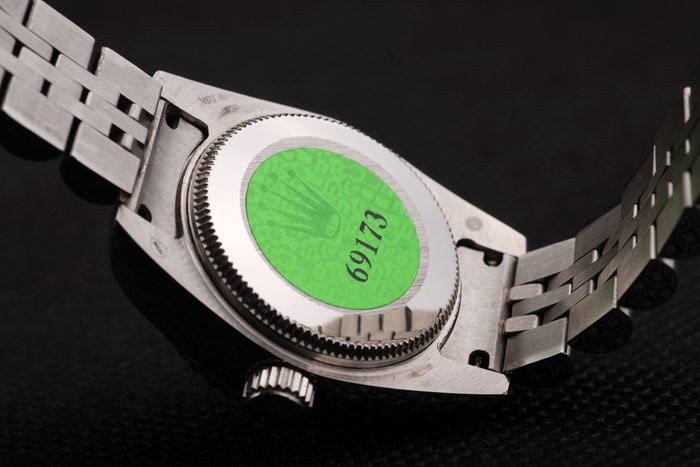 1Back: Empuje en acero inoxidable de nuevo con la etiqueta engomada Rolex verde y markings