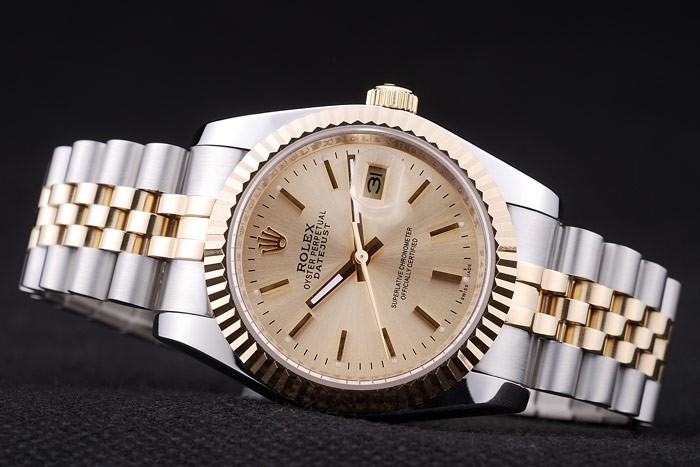Bracelet de acero inoxidable: acero inoxidable cepillado y oro amarillo acoplamiento de la pulsera con el logo de Rolex oculto Longitud clasp