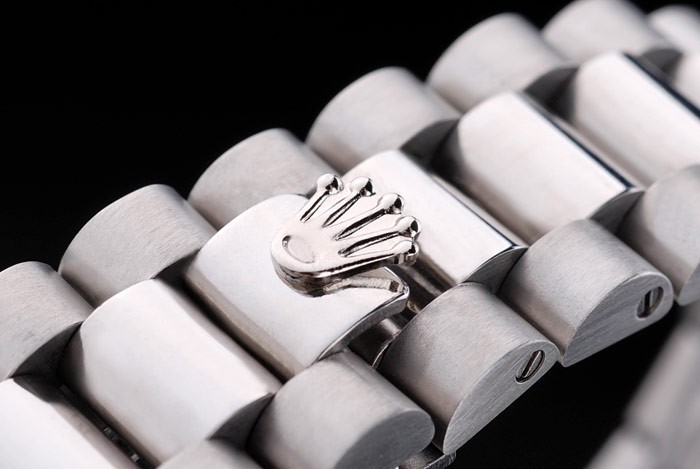 Bracelet acero inoxidable cepillado y pulido brazalete de eslabones de acero inoxidable con grabado Rolex cierre oculto que muestra la longitud Rolex logo