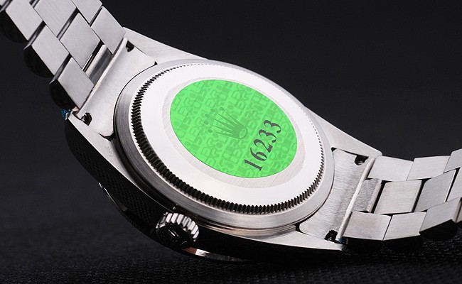 Volver: Acero inoxidable empuje en caso de vuelta con el verde Rolex logo stamp