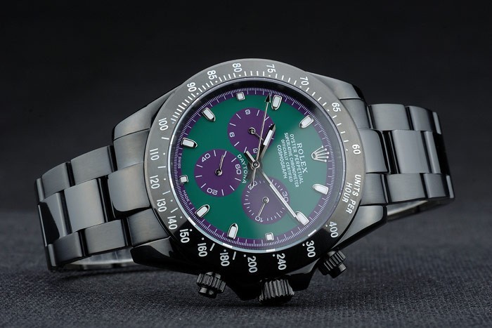 Rolex Daytona Negro Ion plateado taquímetro Negro correa de acero inoxidable Dial 80246 Verde
