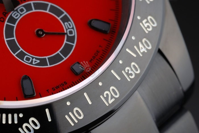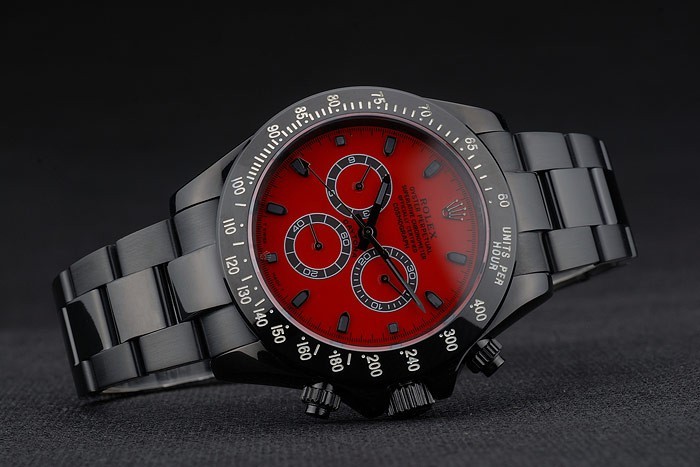 Rolex Daytona Negro Ion plateado taquímetro Negro correa de acero inoxidable Red Dial 80248