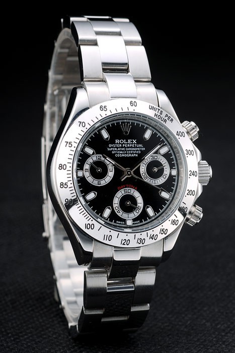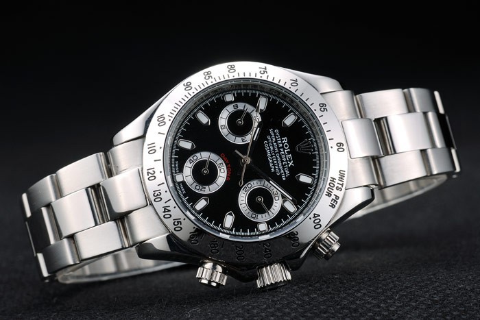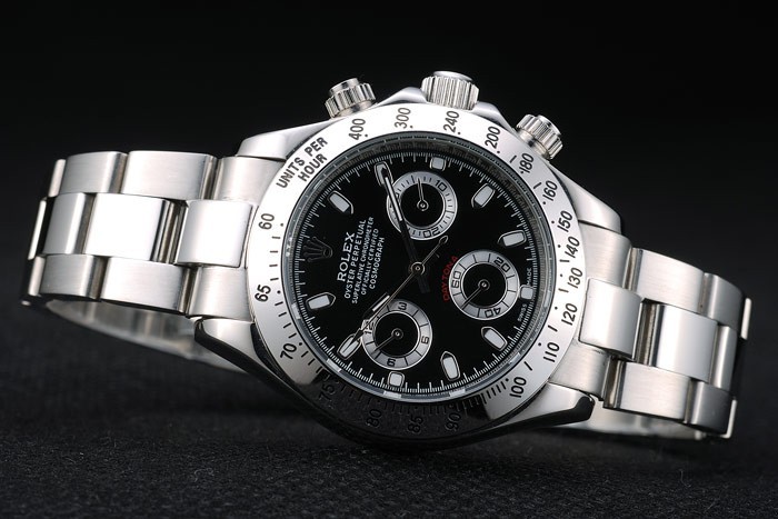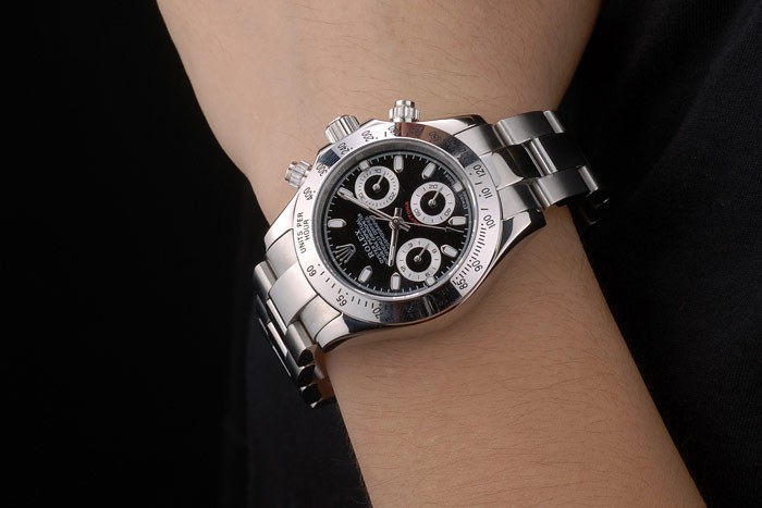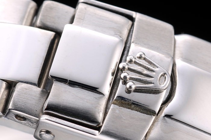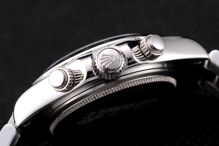 Crown: acero inoxidable pulido corona de calado con el logotipo de Rolex y dos botones pulsadores cutwork coronas más pequeñas a cada lado de it
