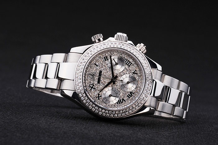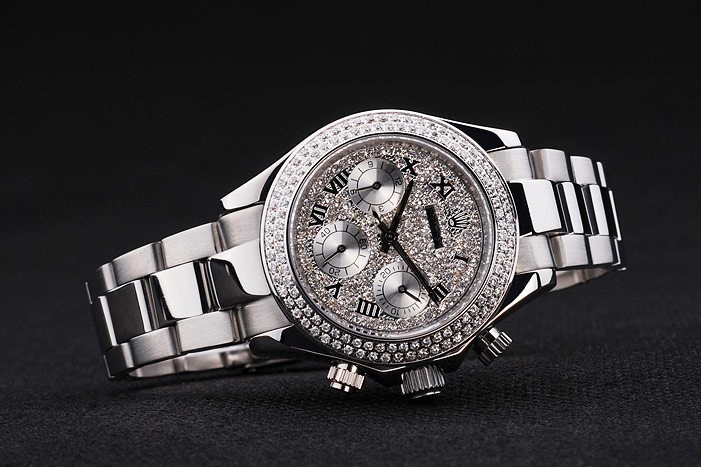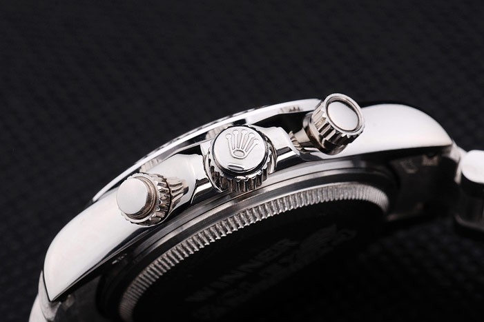 Crown: acero inoxidable pulido corona de calado con el logotipo de Rolex y dos coronas adicionales a cada lado de it