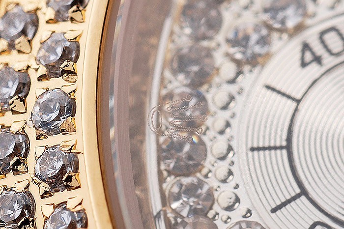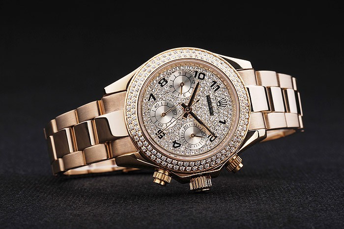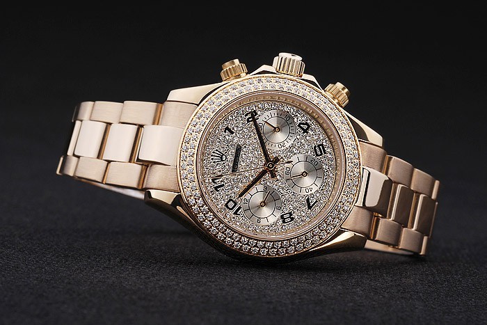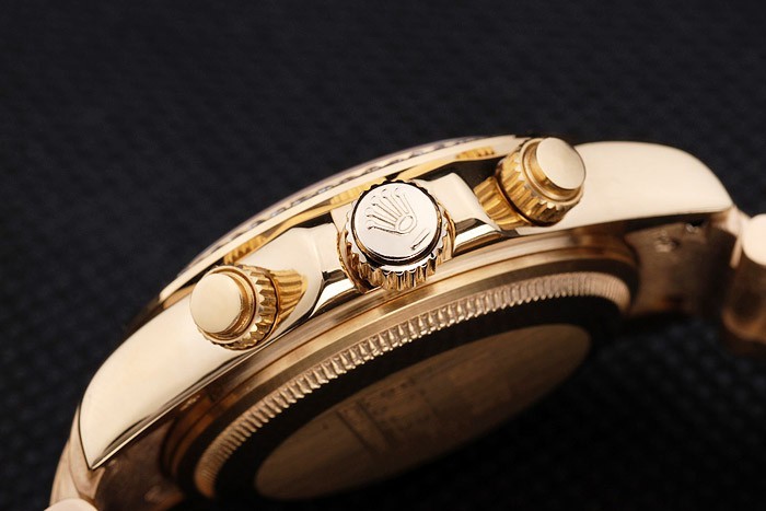 Crown: corona del oro calado tonos con el logotipo de Rolex y dos coronas adicionales a ambos lados de it
