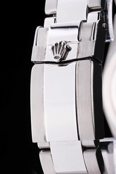 Crown: acero inoxidable pulido corona de calado con el logotipo de Rolex y dos coronas adicionales a cada lado de it