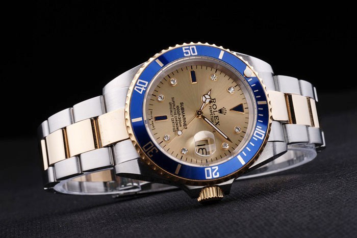 Bezel: Gold-tono bisel de calado en el minuto esmaltados azules luminosos marcados top