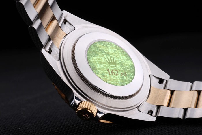 Volver: Acero inoxidable empuje en caso de vuelta con el verde de Rolex grabado stamp