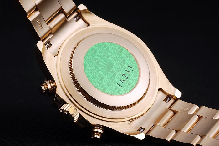 Volver: Rose-oro de empuje en la parte trasera con el verde Rolex logo stamp