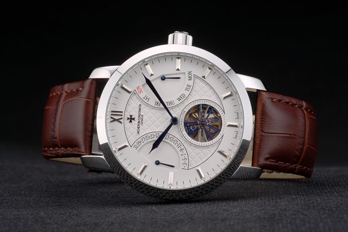 Bracelet de acero inoxidable: Vacheron Constantin y correa de piel de cocodrilo marrón en relieve el logo característico con el logotipo de acero inoxidable pulido gancho de la hebilla clasp