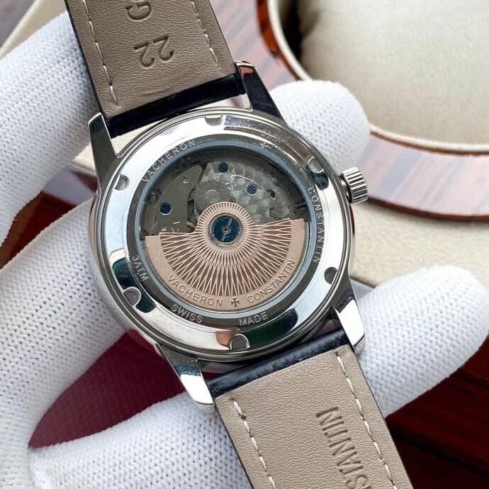 Bracelet de acero inoxidable: El calor en relieve Vacheron Constantin y correa de piel de cocodrilo negro con el logotipo de acero inoxidable pulido logotipo de gancho -buckle Longitud clasp