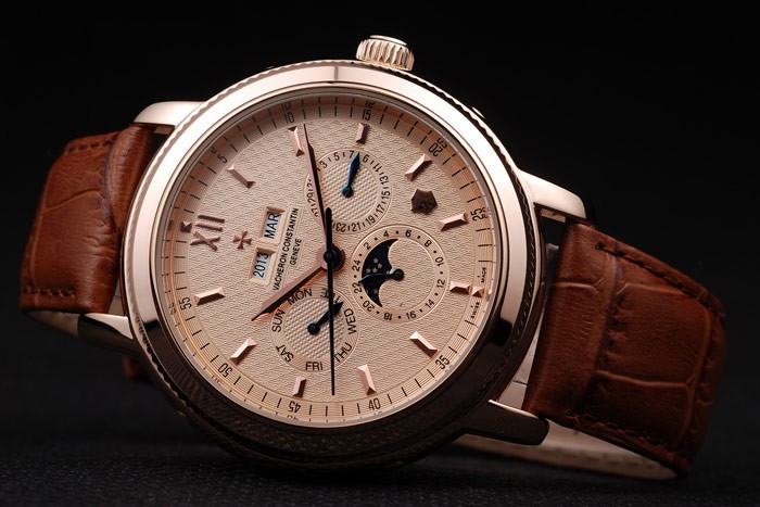Crown: rosa de 18 quilates chapado en oro de la corona calado con el logotipo de Vacheron Constantin